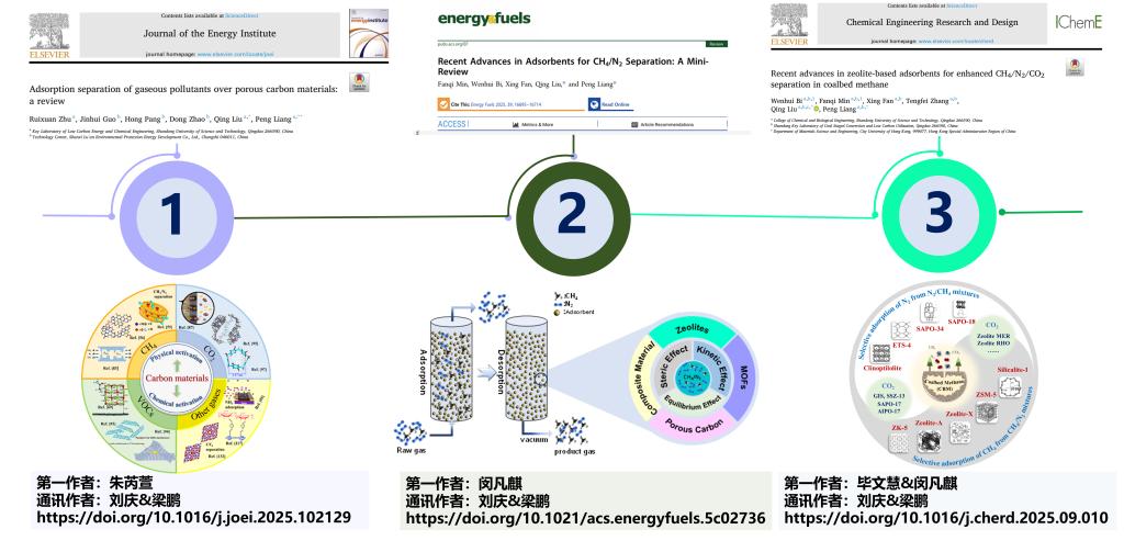 接着,我们全面综述了不同吸附材料在CH4/N2分离领域的最新研究成果(Energy & Fuels 2025, 39, 16695−16714),深入解析了材料改性策略、吸附机制以及工艺优化路径,未来吸附材料研究将向三方向突破:一是设计“收费站式孔口-高速路式孔道-服务区式吸附位点”新型结构,同步强化空间位阻、传质效率与平衡吸附;二是结合高通量计算、机器学习与分子模拟,加速材料筛选与性能预测;三是突破工业化瓶颈,解决吸附剂规模化生产、机械强度与循环稳定性问题。